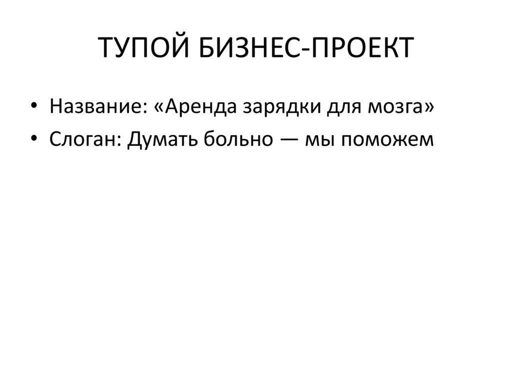 ТУПОЙ БИЗНЕС-ПРОЕКТ• Название: «Аренда зарядки для мозга»