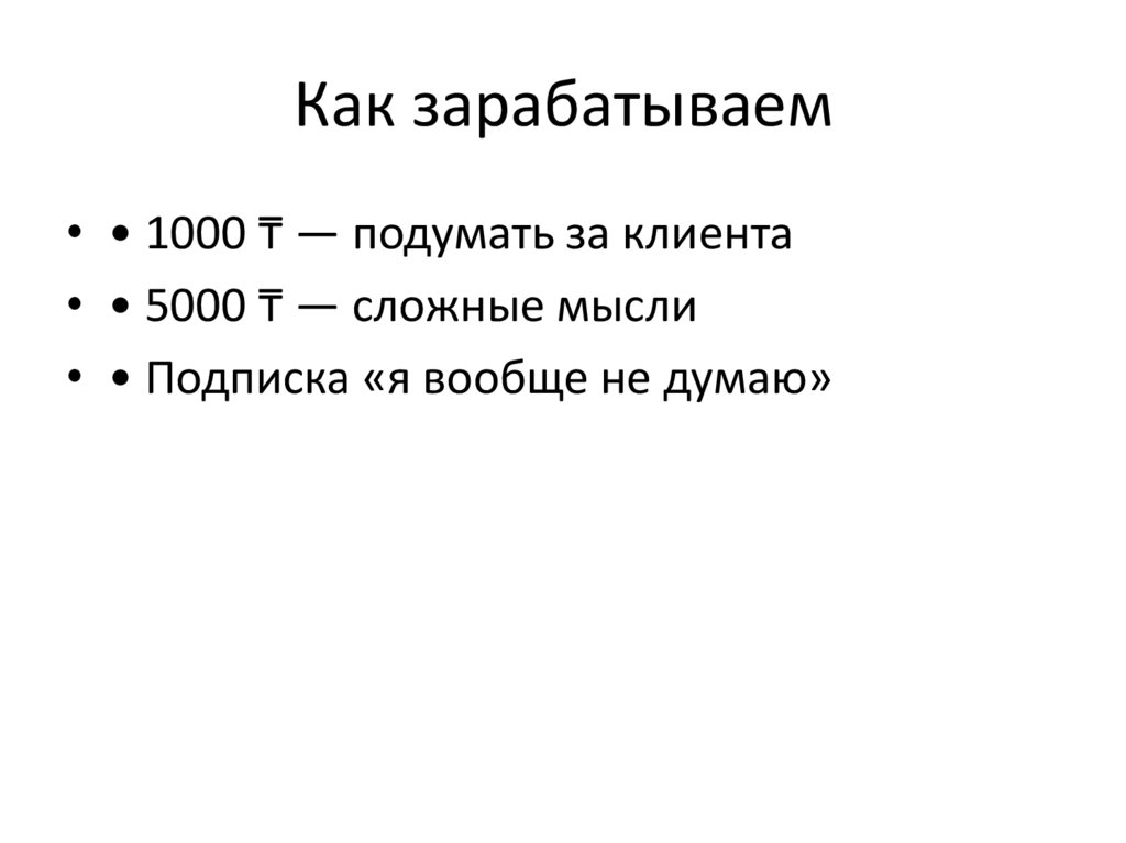 Как зарабатываем• • 1000 ₸ — подумать за клиента
