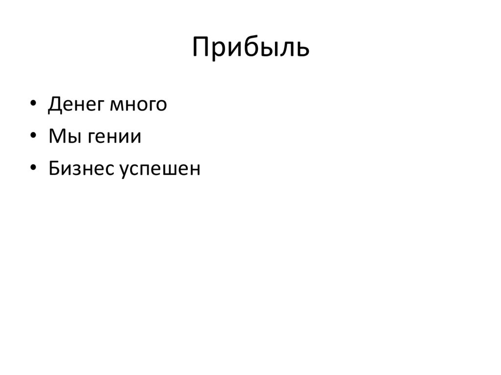 Прибыль• Денег много