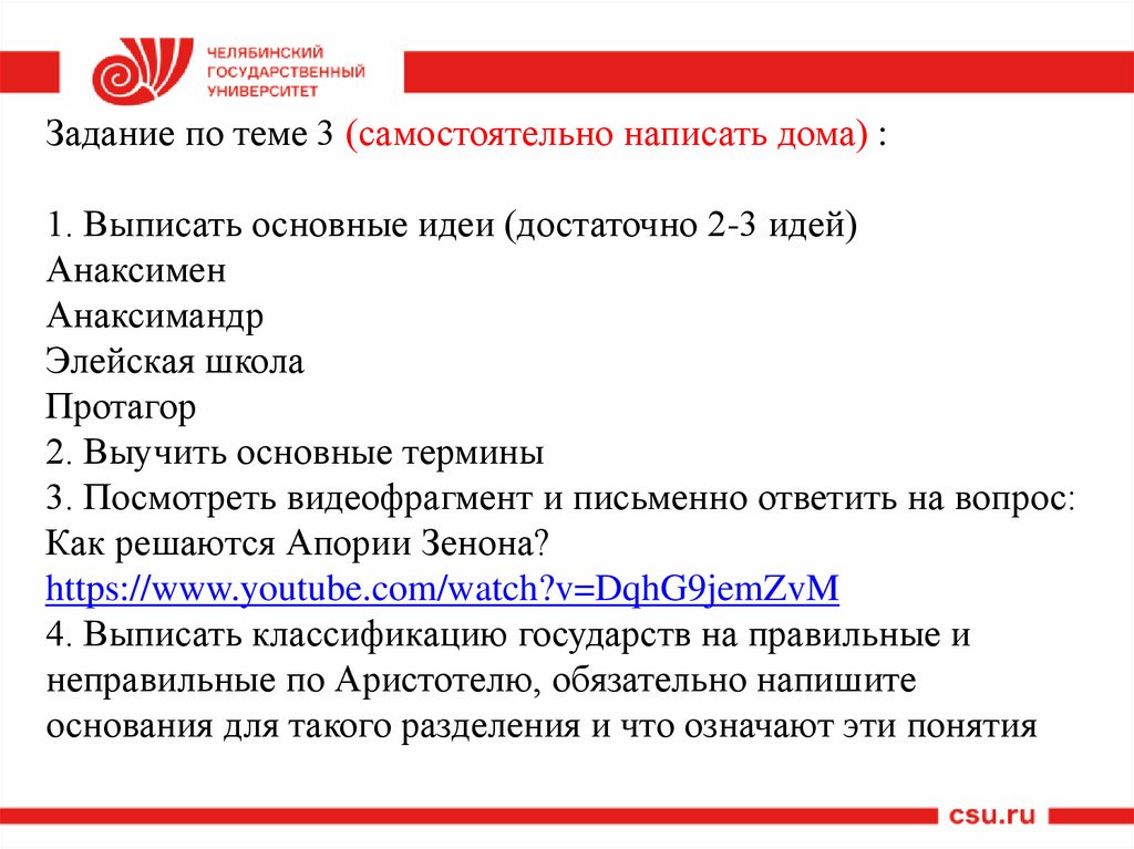 Задание по теме 3 (самостоятельно написать дома) :1. Выписать основные идеи (достаточно 2-3 идей)