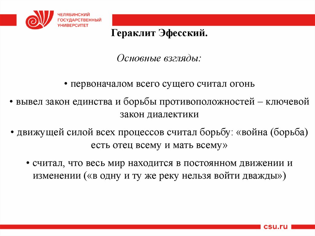 • движущей силой всех процессов считал борьбу: «война (борьба)