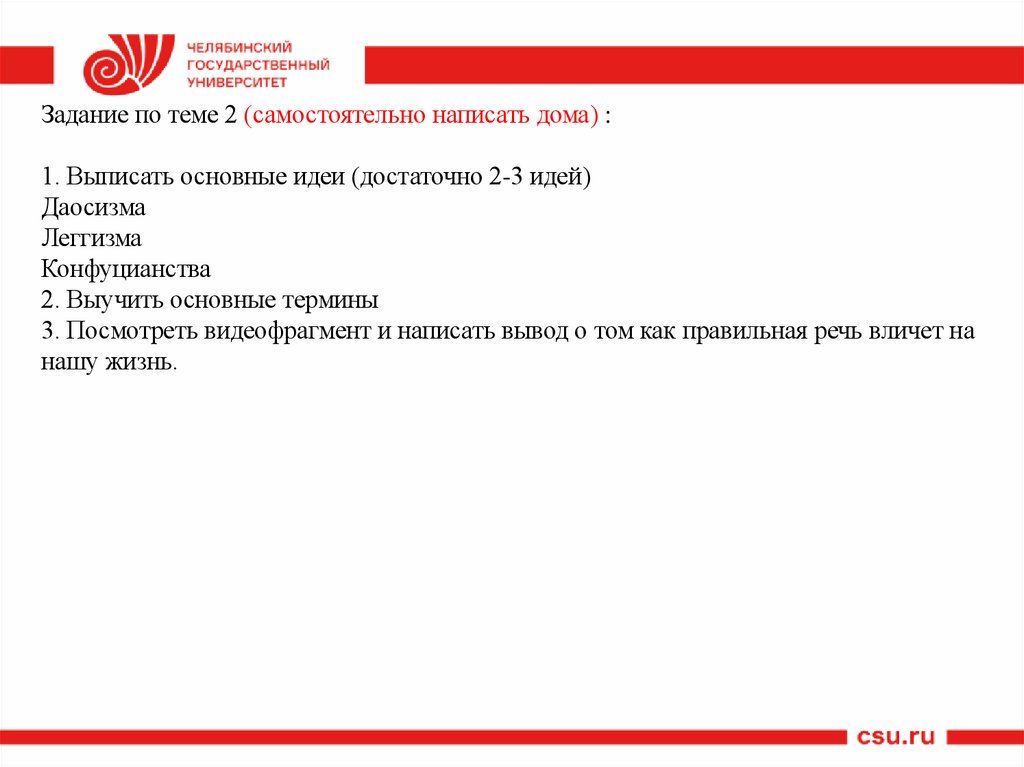 Задание по теме 2 (самостоятельно написать дома) :1. Выписать основные идеи (достаточно 2-3 идей)