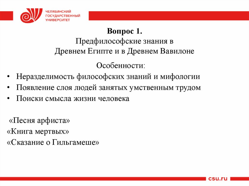 1. Предфилософские знания в Древнем Египте и в ДревнемВавилоне