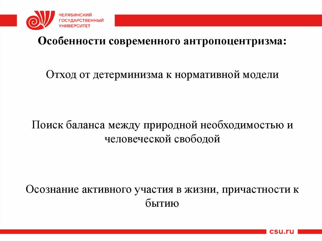 Особенности современного антропоцентризма:Отход от детерминизма к нормативной модели
