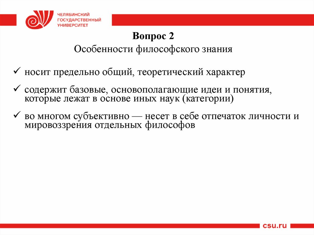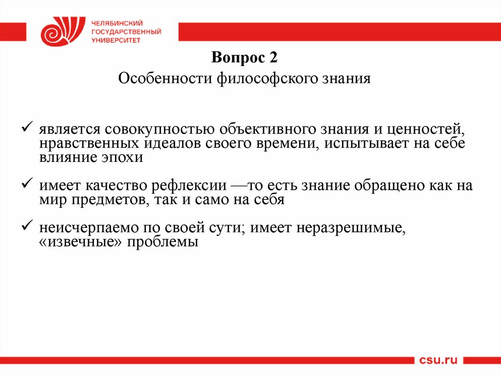 2. Особенности философского знания