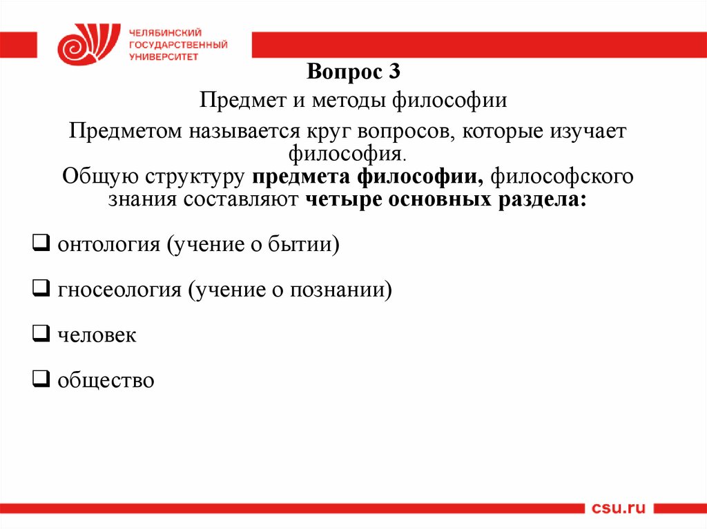 3. Предмет и методы философии