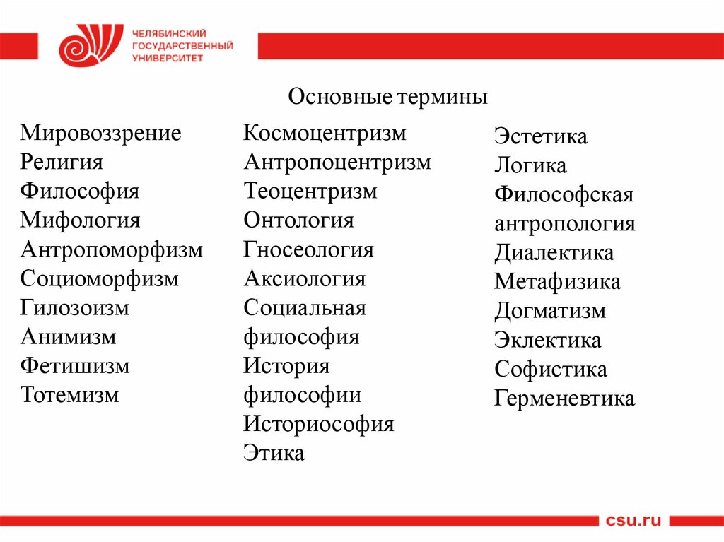 Основные терминыМировоззрение