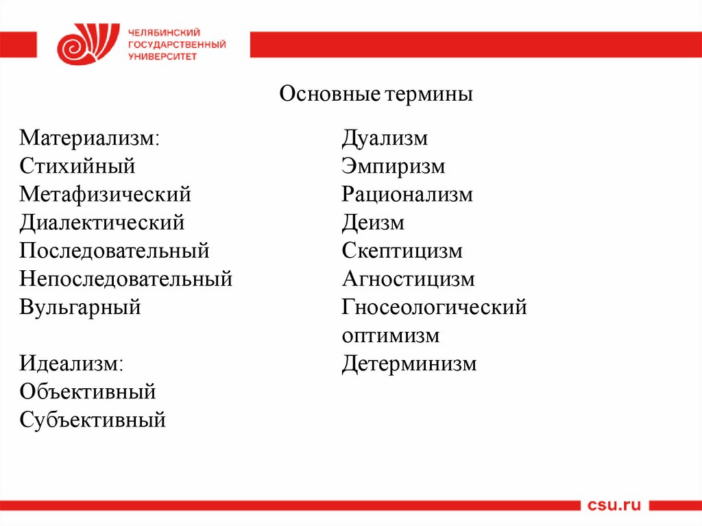 Основные терминыМатериализм: