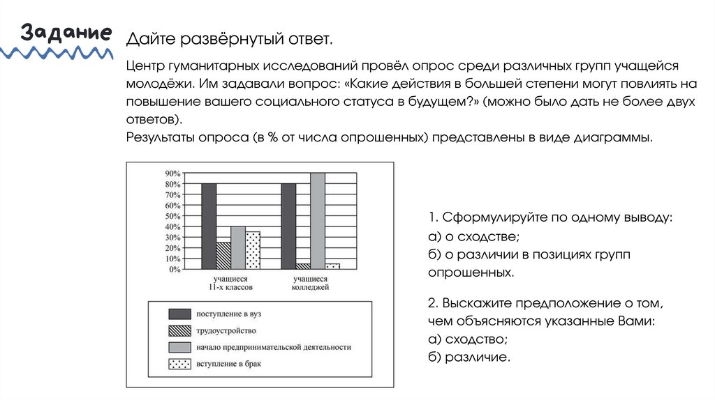 Задание Дайте развёрнутый ответ.Центр гуманитарных исследований провёл опрос среди различных групп учащейся