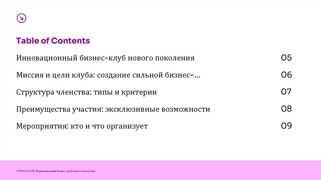 Table of ContentsИнновационный бизнес-клуб нового поколения