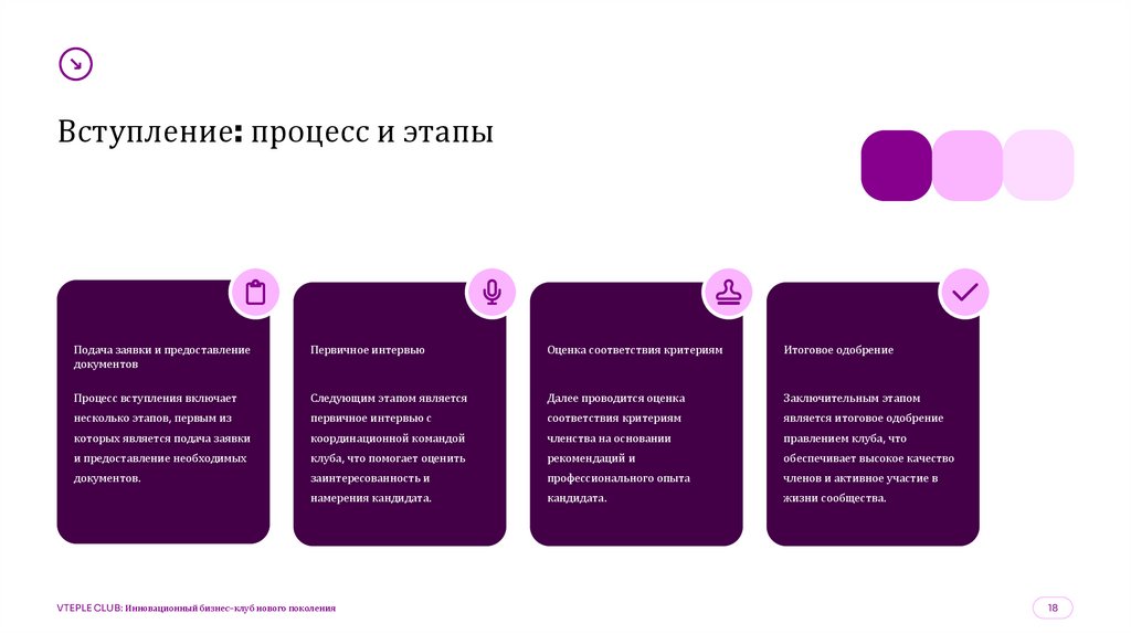 Процесс вступления предусматривает