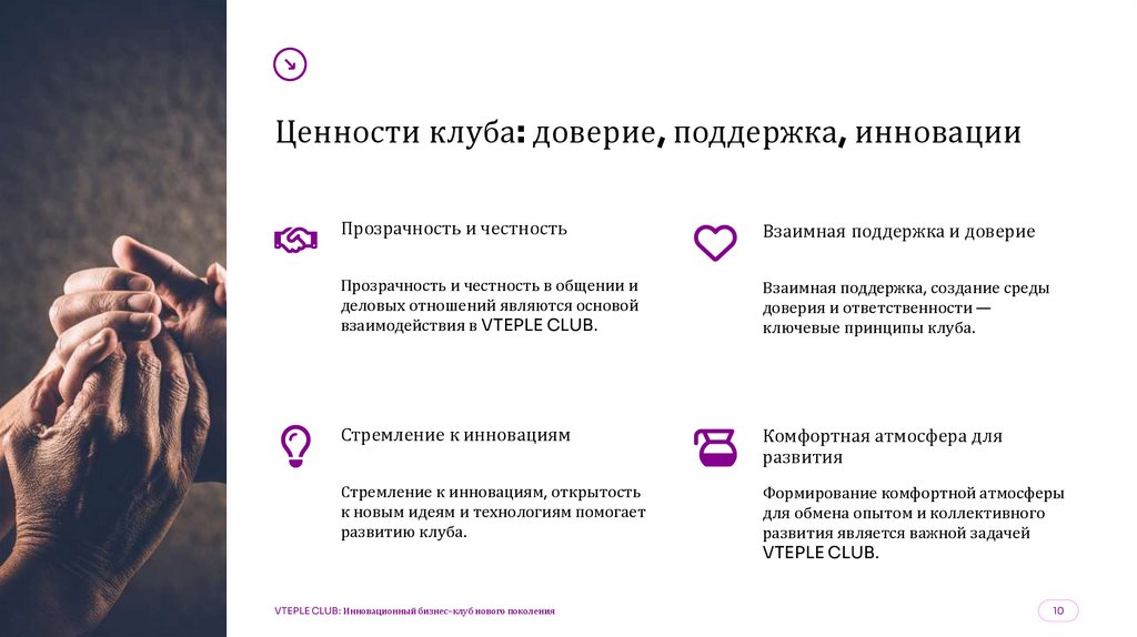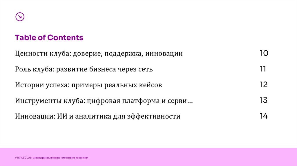 Table of ContentsЦенности клуба: доверие, поддержка, инновации