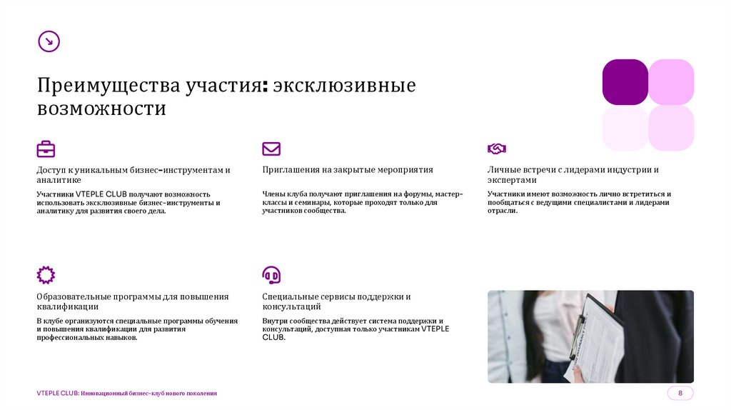 Преимущества и призыв к действиюЧленство в VTEPLE CLUB открывает