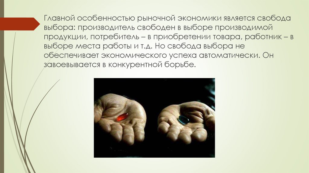 Главной особенностью рыночной экономики является свободавыбора: производитель свободен в выборе производимой