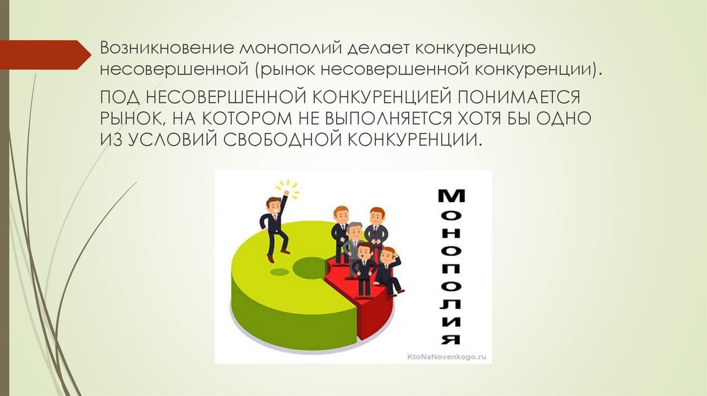 Возникновение монополий делает конкуренциюнесовершенной (рынок несовершенной конкуренции).