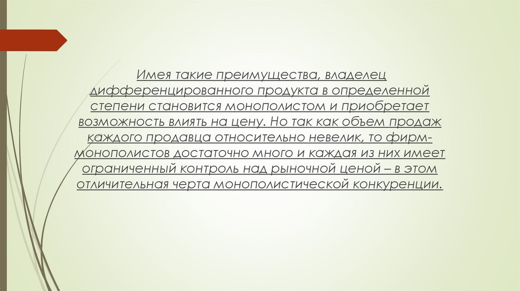 Имея такие преимущества, владелецдифференцированнoго продукта в определенной