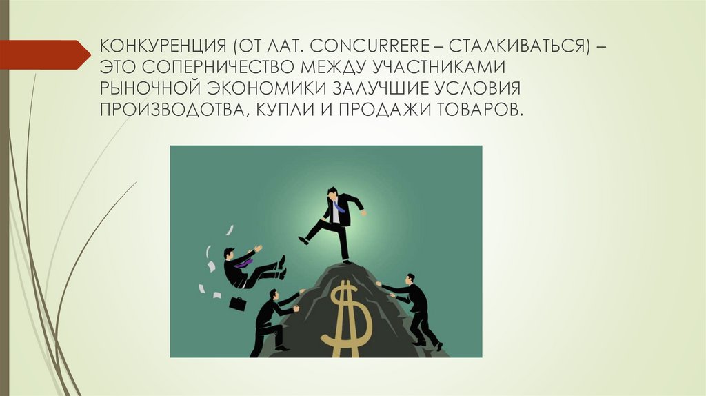 КОНКУРЕНЦИЯ (ОТ ЛАТ. СОNCURRERE – СТАЛКИВАТЬСЯ) –ЭТО СОПЕРНИЧЕСТВО МЕЖДУ УЧАСТНИКАМИ