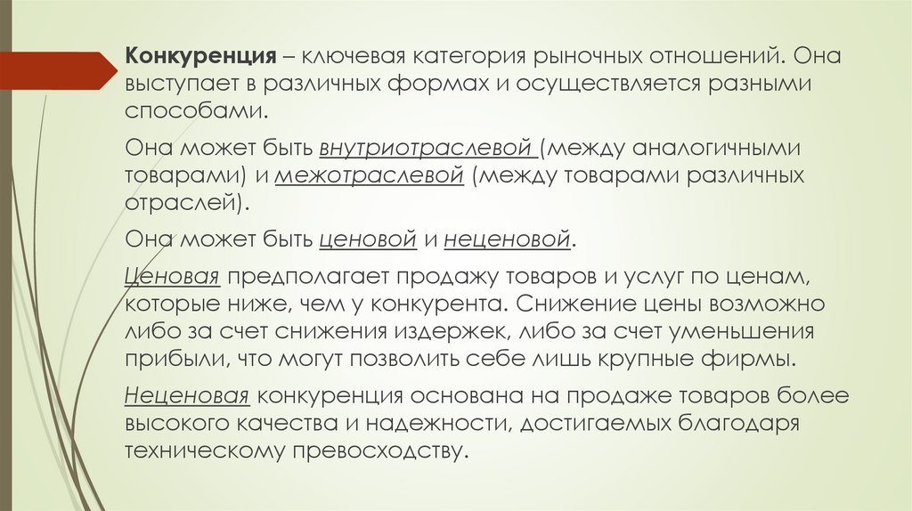 Конкуренция – ключевая категория рыночных отношений. Онавыступает в различных формах и осуществляется разными