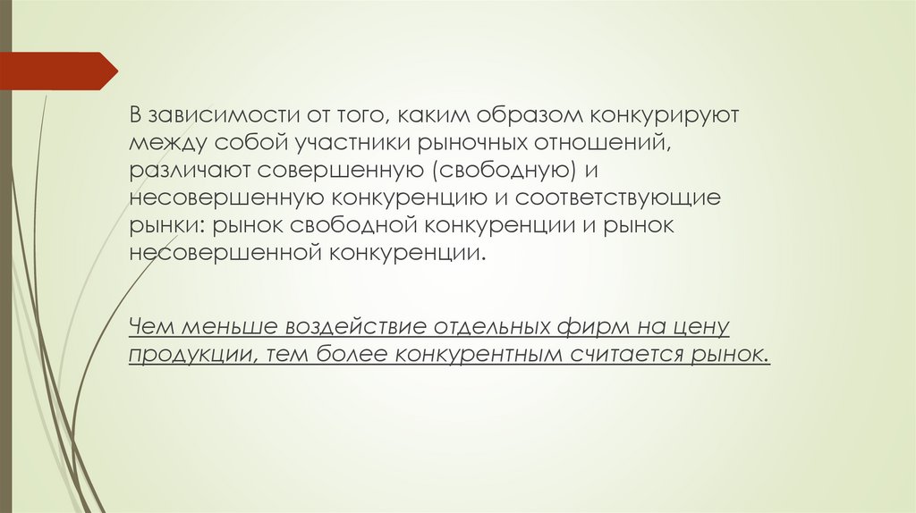 В зависимости от того, каким образом конкурируютмежду собой участники рыночных отношений,