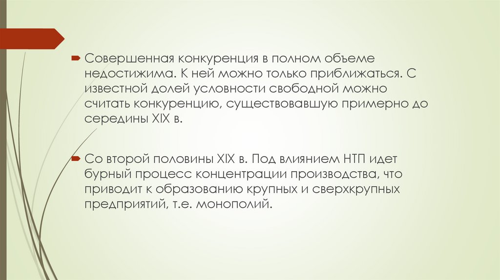 Совершенная конкуренция в полном объеменедостижима. К ней можно только приближаться. С