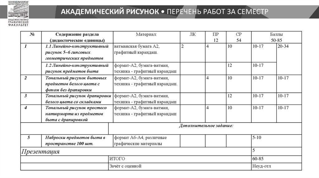 АКАДЕМИЧЕСКИЙ РИСУНОК • ПЕРЕЧЕНЬ РАБОТ ЗА СЕМЕСТР№