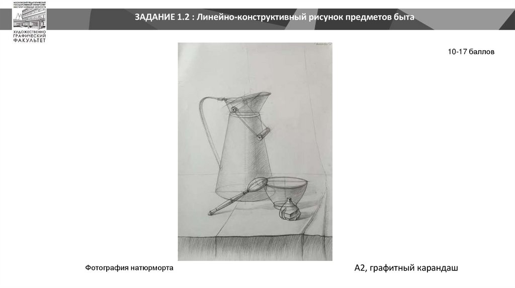 ЗАДАНИЕ 1.2 : Линейно-конструктивный рисунок предметов быта10-17 баллов