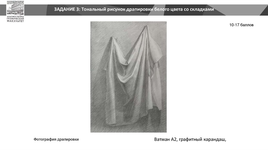 ЗАДАНИЕ 3: Тональный рисунок драпировки белого цвета со складками10-17 баллов