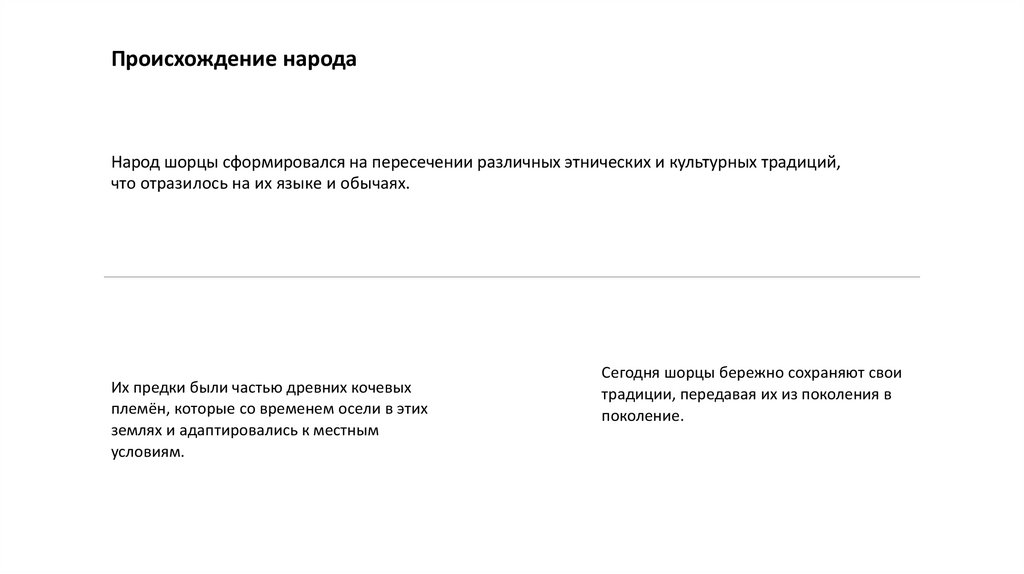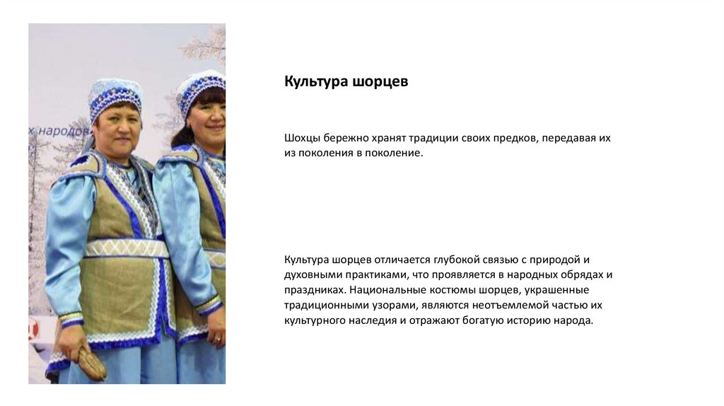 Происхождение народаНарод шорцы сформировался на пересечении различных этнических и культурных традиций,