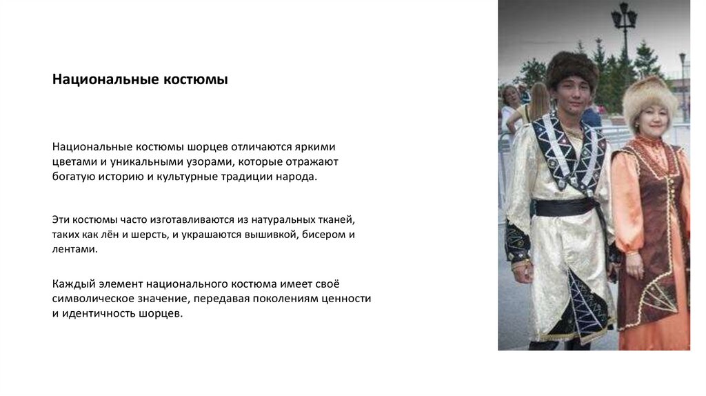 Национальные костюмыНациональные костюмы шорцев отличаются яркими