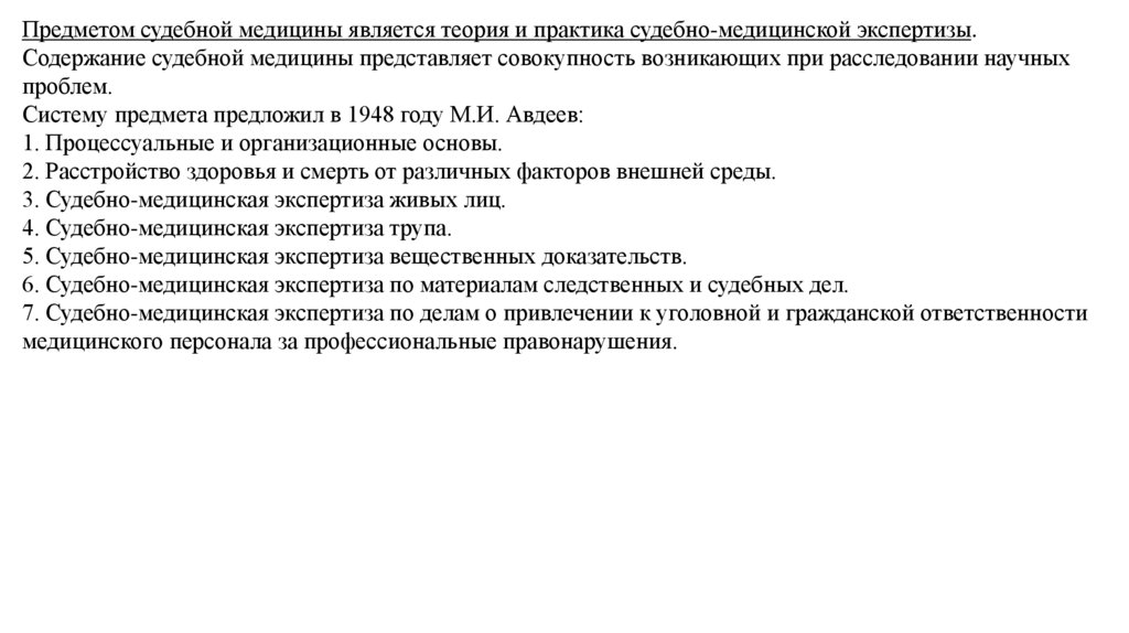 2. Предмет и содержание судебной медицины