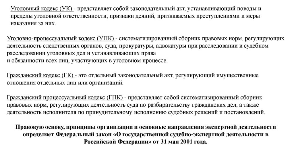• Федеральный закон от 31.05.2001 № 73-ФЗ «О государственной судебно-экспертной деятельности в