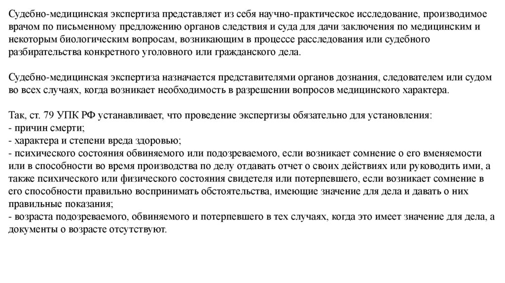 материале или других образцах, имеющих значение для судебно-медицинской и судебноследственной практики.