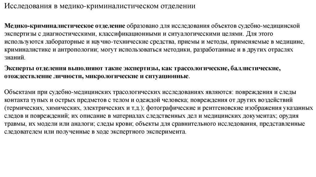 Исследования в судебно-биологическом отделенииВ судебно-биологическом отделении выявляют и исследуют биологические объекты на вещественных