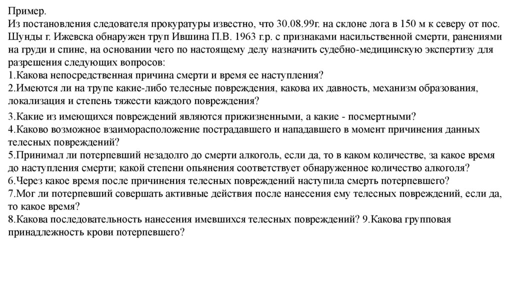 Основные вопросы, решаемые при судебно-медицинской экспертизе вещественных доказательств.