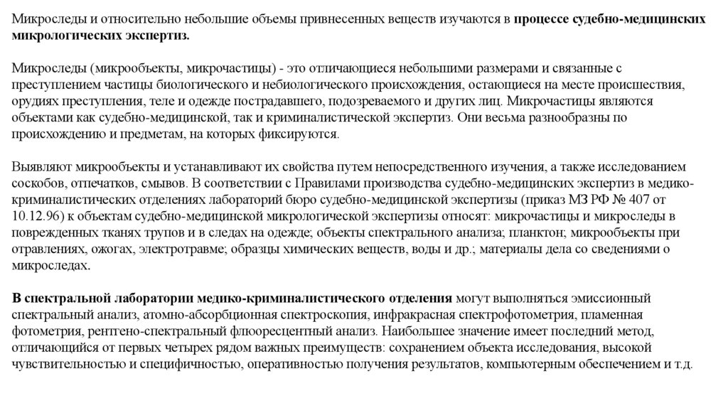 поврежденных тканях трупов и в следах на одежде; объекты спектрального анализа; планктон; микрообъекты при