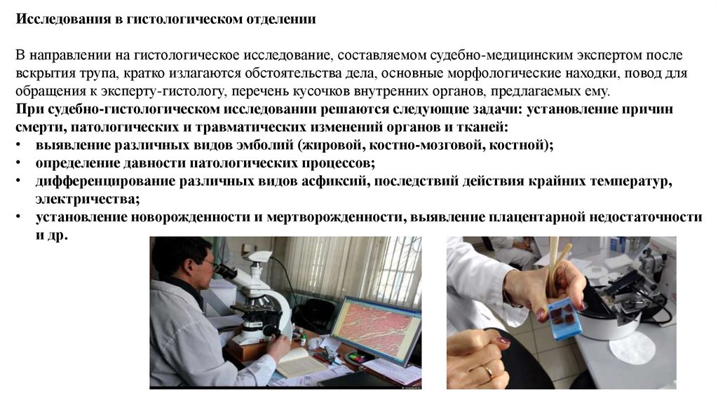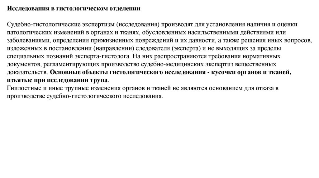 Исследования в гистологическом отделенииСудебно-гистологические экспертизы (исследования) производят для установления наличия и оценки