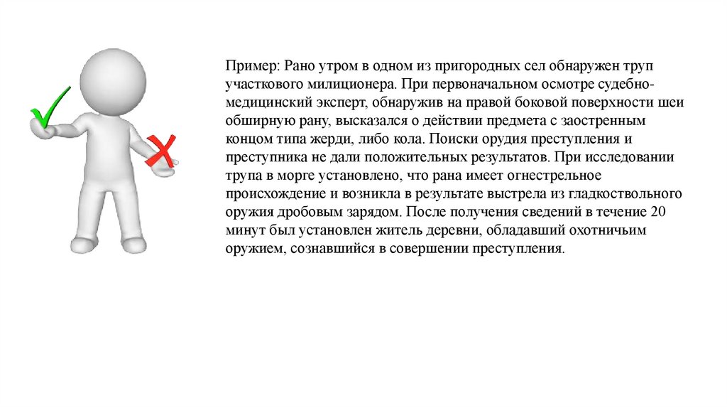 Пример.Из постановления следователя прокуратуры известно, что 30.08.99г. на склоне лога в 150 м к северу от пос.