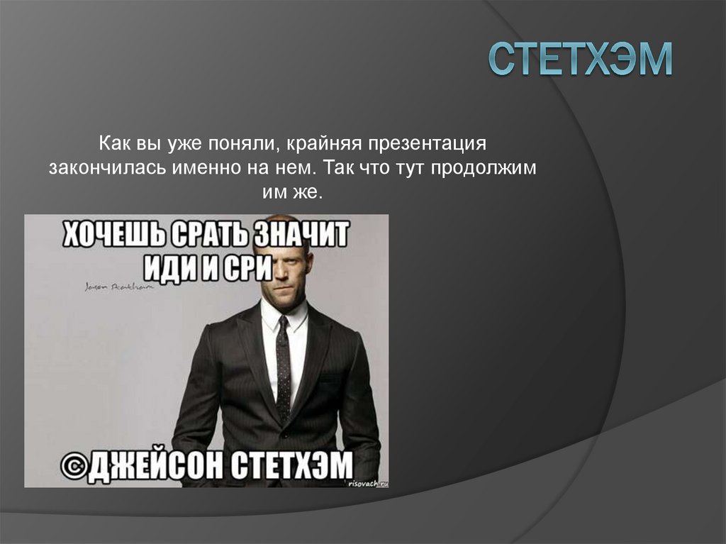 Как вы уже поняли, крайняя презентациязакончилась именно на нем. Так что тут продолжим
