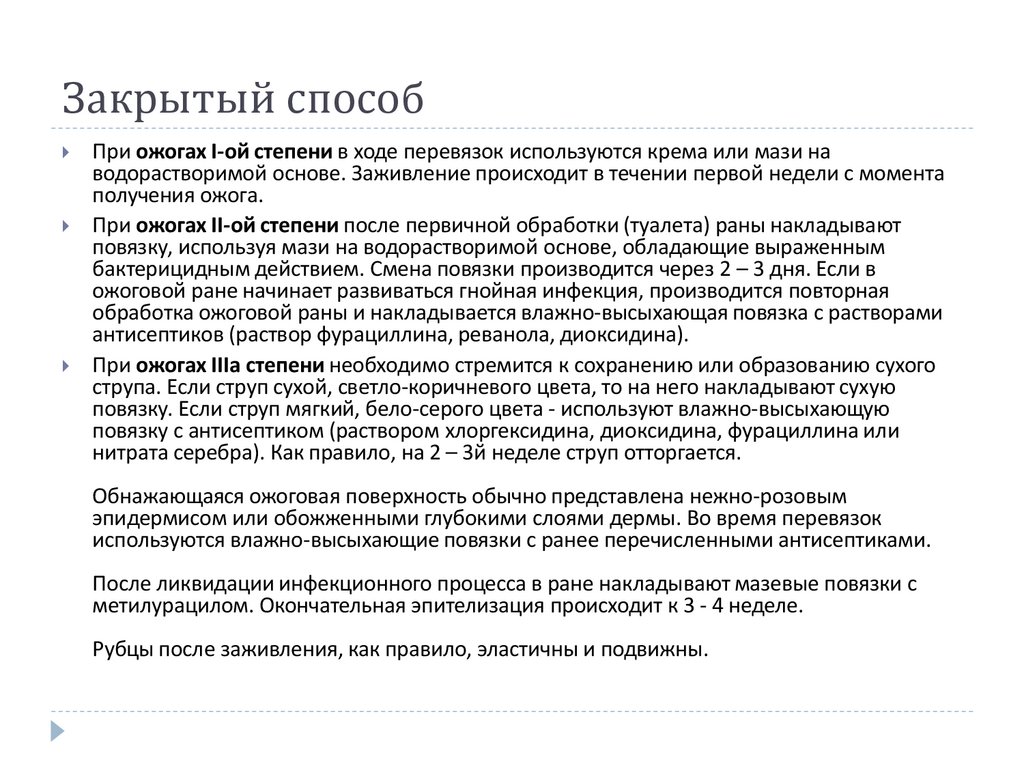 диагнозе; мазевые – при отморожениях I – II степени; влажновысыхающие – при поражениях III –IV cтепени.