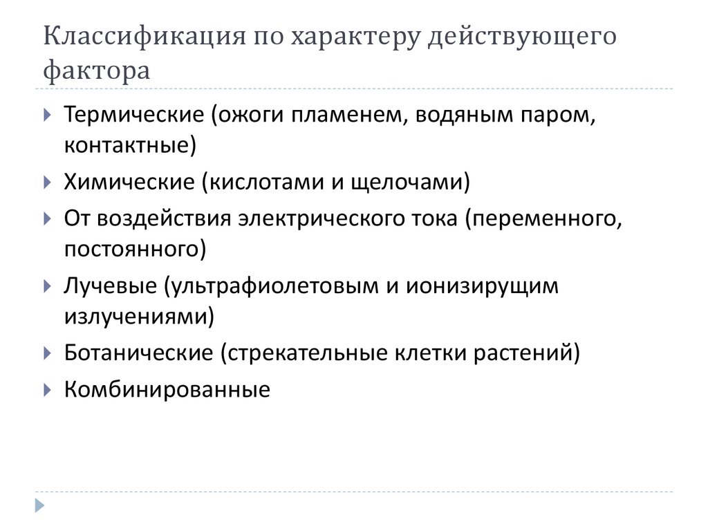 Классификация по характеру действующегофактора