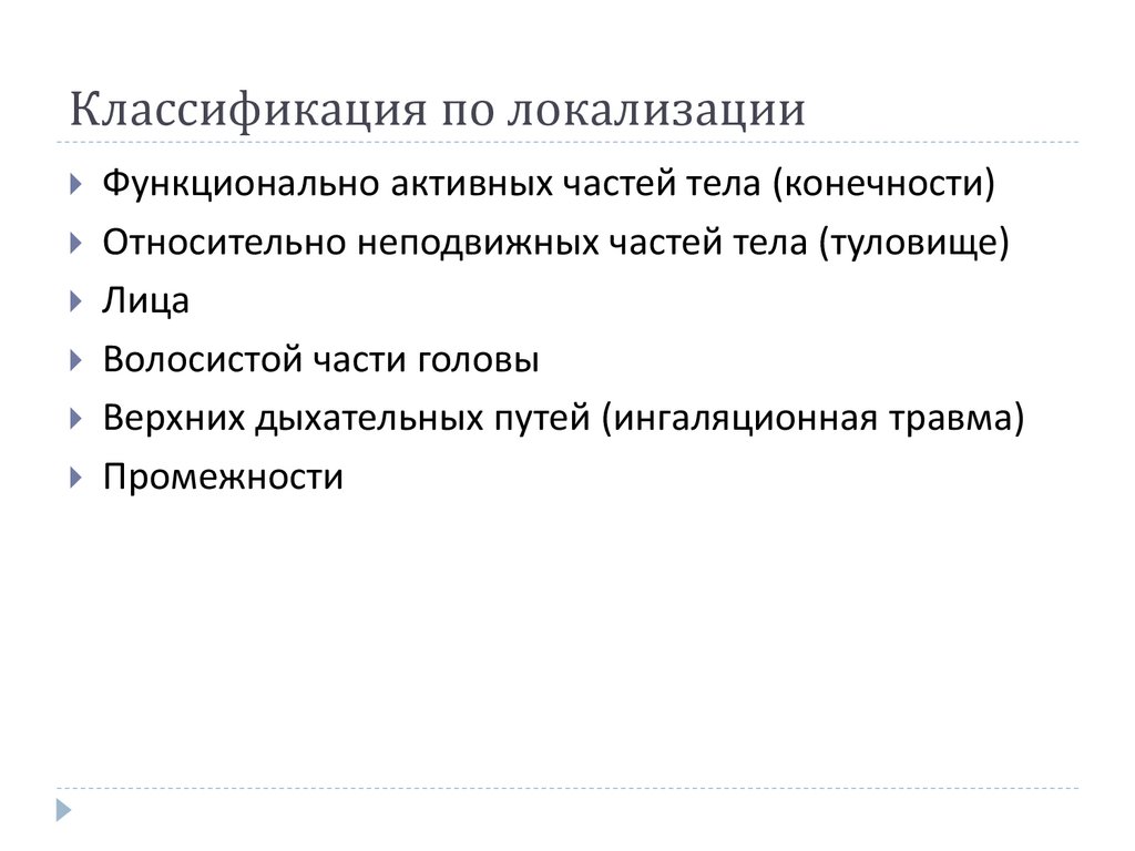 Классификация по локализацииФункционально активных частей тела (конечности)