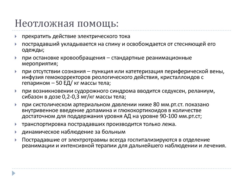 Пострадавшего помещают в ванну с водой, температура которой постепенно повышается с 34̊ до 42̊