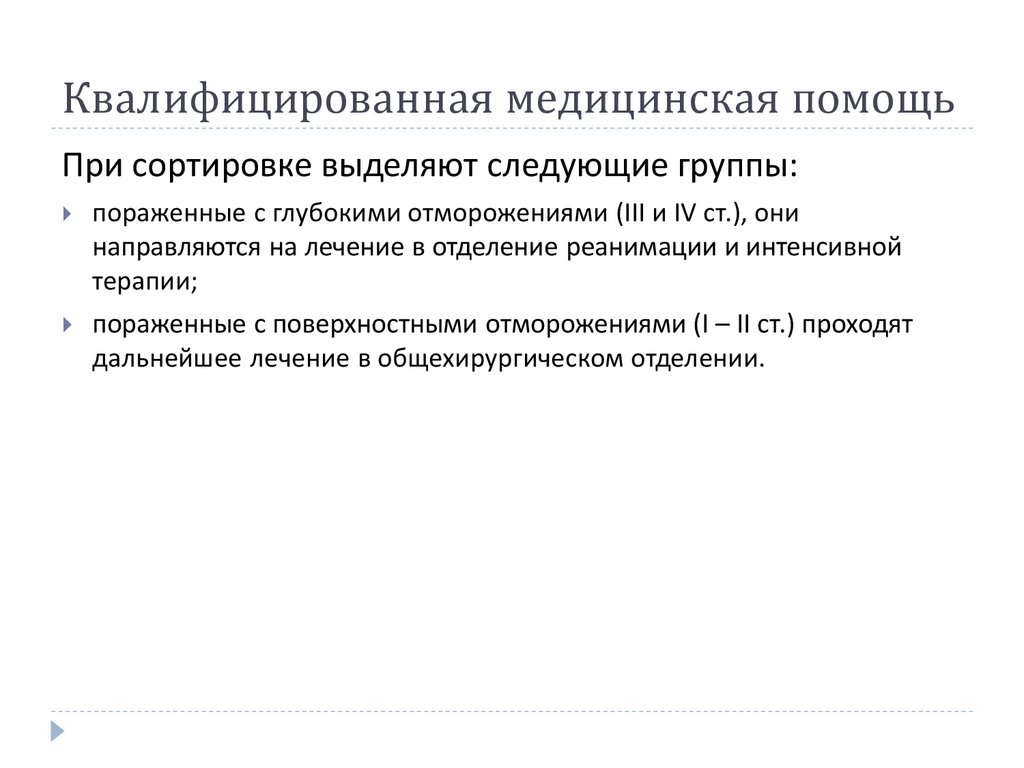 Квалифицированная медицинская помощьПри сортировке выделяют следующие группы: