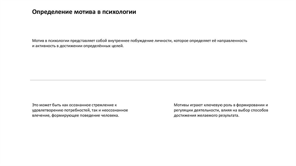 Определение мотива в психологииМотив в психологии представляет собой внутреннее побуждение личности, которое определяет её направленность