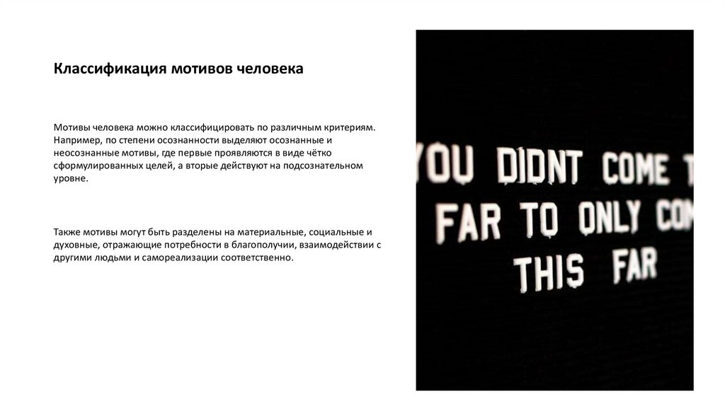 Классификация мотивов человекаМотивы человека можно классифицировать по различным критериям.