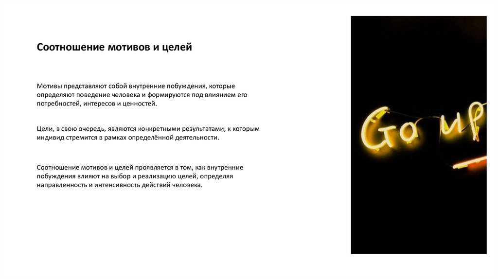 Соотношение мотивов и целей проявляется в том, как внутренние