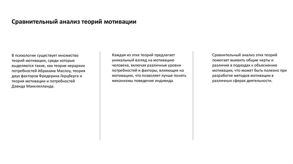 Сравнительный анализ теорий мотивацииВ психологии существует множество
