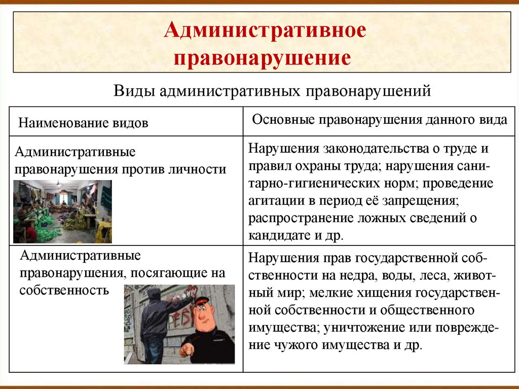 Виды административных правонарушений