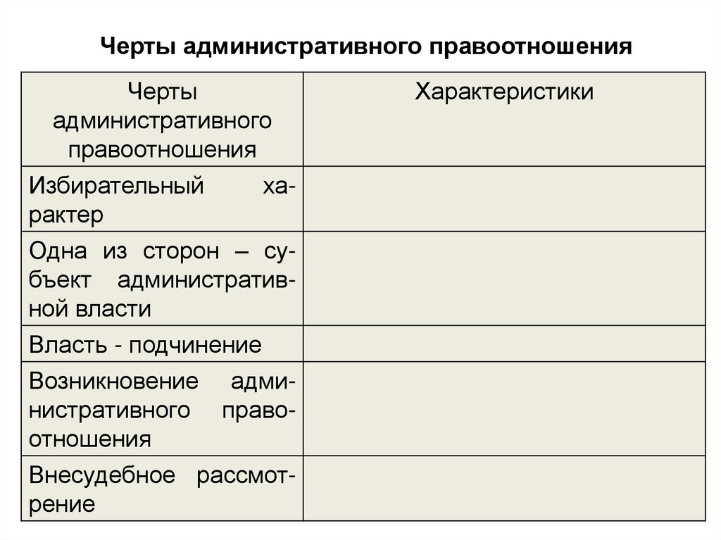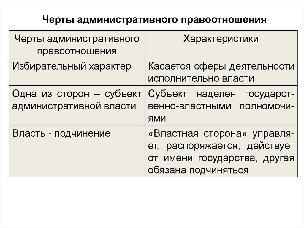 Черты административного правоотношенияЧерты административного