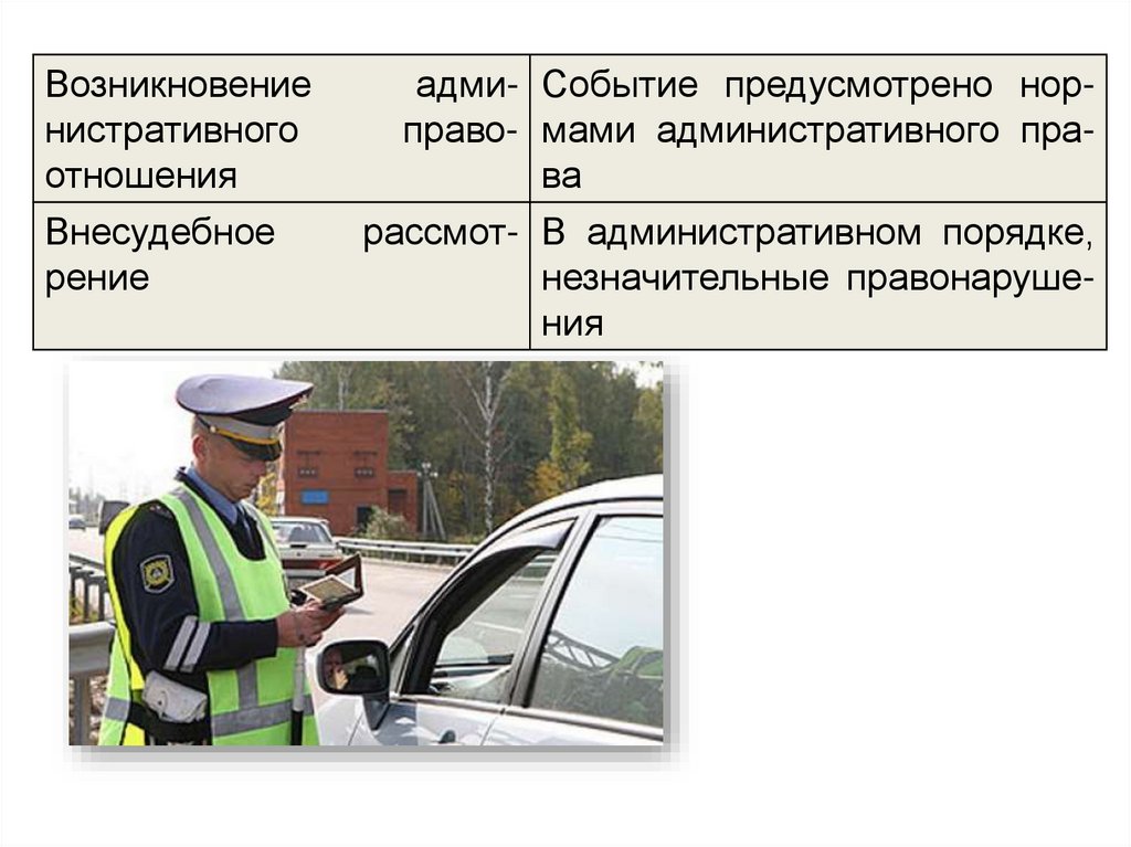 адми- Событие предусмотрено норправо- мами административного права